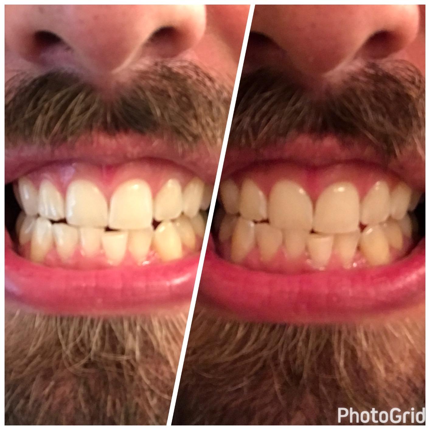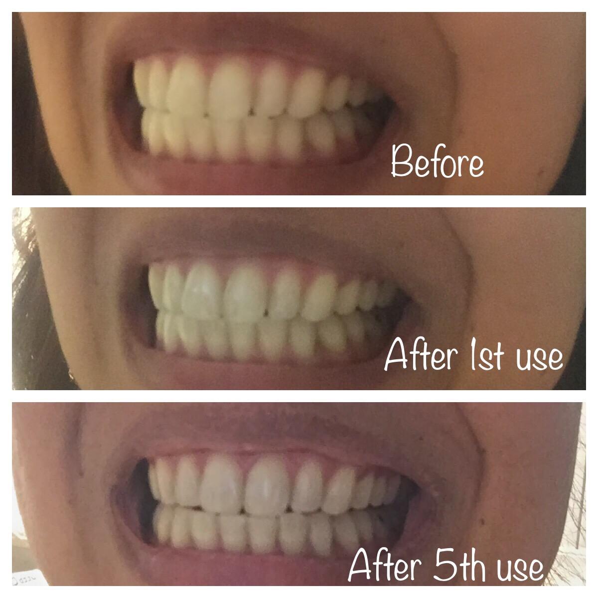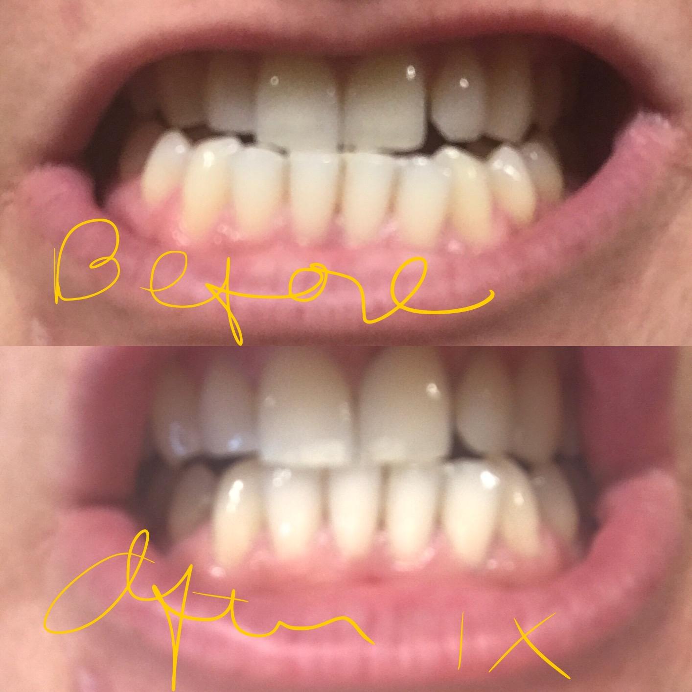 I do this once a day and have never had whiter teeth after just one week. If you have yellow teeth and are looking for a change this is what you need! -James