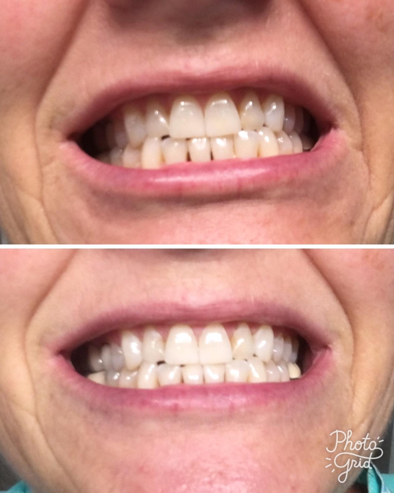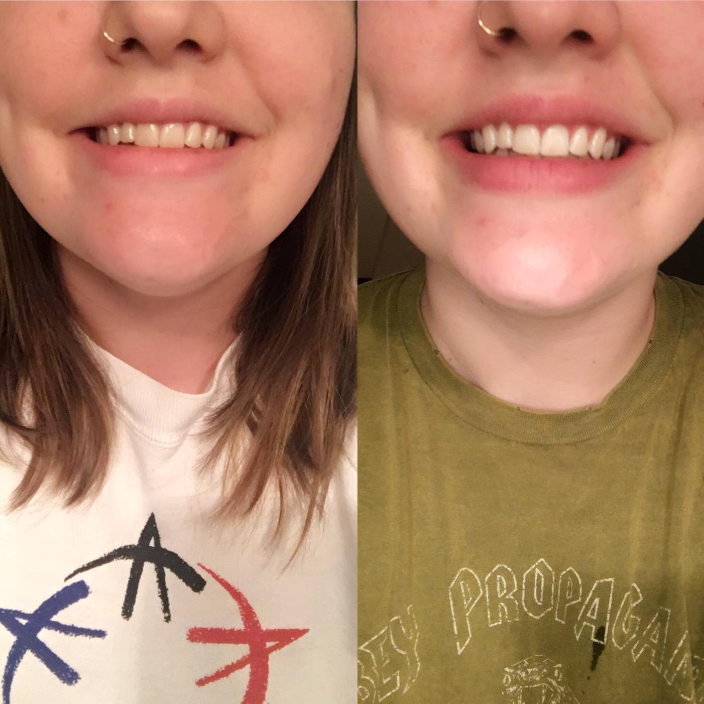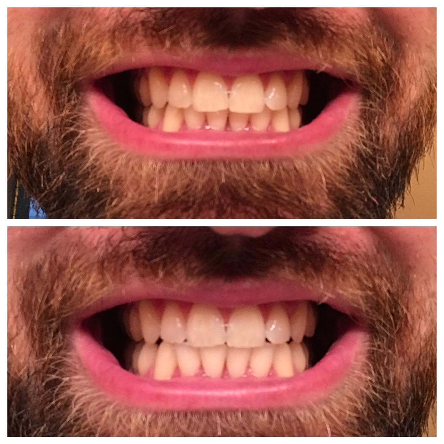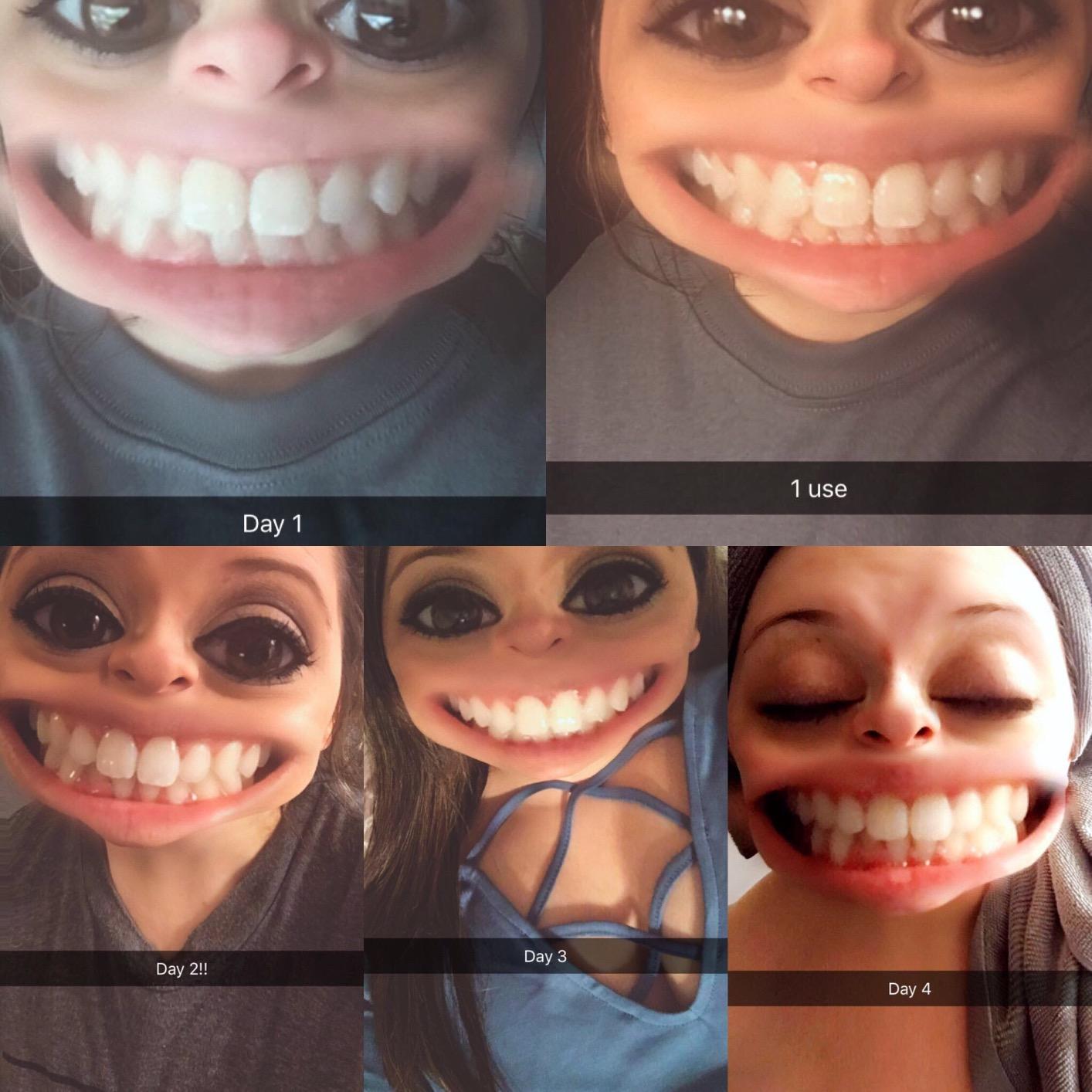 I do this once a day and have never had whiter teeth after just one week. If you have yellow teeth and are looking for a change this is what you need! -James