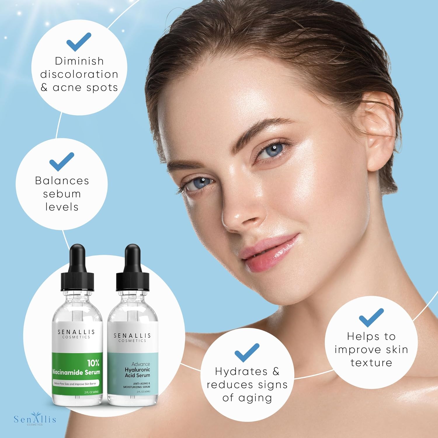 - DOUBLE PACK: You receive our 2 fl oz bottle of Advanced Hyaluronic Acid Serum that contains a mix of High and Low molecular weight Sodium Hyaluronate, and our 2 fl oz bottle of 10% Niacinamide Serum.